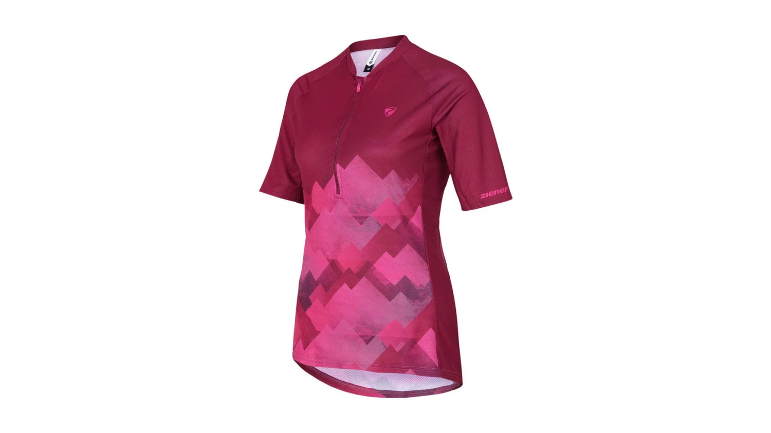 Mit dem schnelltrocknenden ZIENER Fahrradtrikot EDLA für Damen lassen sich Trails und anspruchsvolle Bikepassagen mit Leichtigkeit bewältigen. Das Shirt besteht aus 4-Wege-Stretch-Material, ist extrem leicht und robust und mit einem halben Front-Reißverschluss ausgestattet. Der moderne All-Over Sublimationsdruck und ein etwas längerer Ärmel unterstreichen den sportlichen, lässigen Look dieses Trikots. In der nahtfeinen Reißverschlusstasche können kleine Gegenstände optimal vertraut werden. Mit integriertem Brillenputztuch.